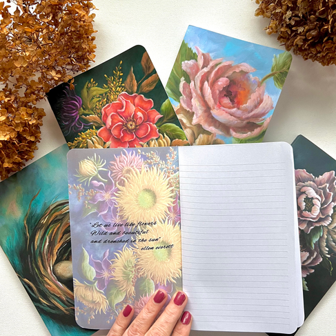And of course, I always have plenty of floral themed, journals, notecards, prints, and, new this year, greeting cards. These items are priced to make the gift of art accessible to all.