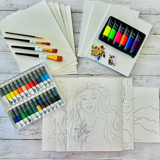 With gift giving in mind, in recent years I have added art supply boxes for parents of children and teen creatives. Each kit includes quality, yet affordable brushes and paints that I chose with young artists in mind, along with canvases and mulit media paper and painting starter designs. The idea was to make it easier for parents to give the gift of art, even if they themselves, don't know a lot about what supplies to purchase.